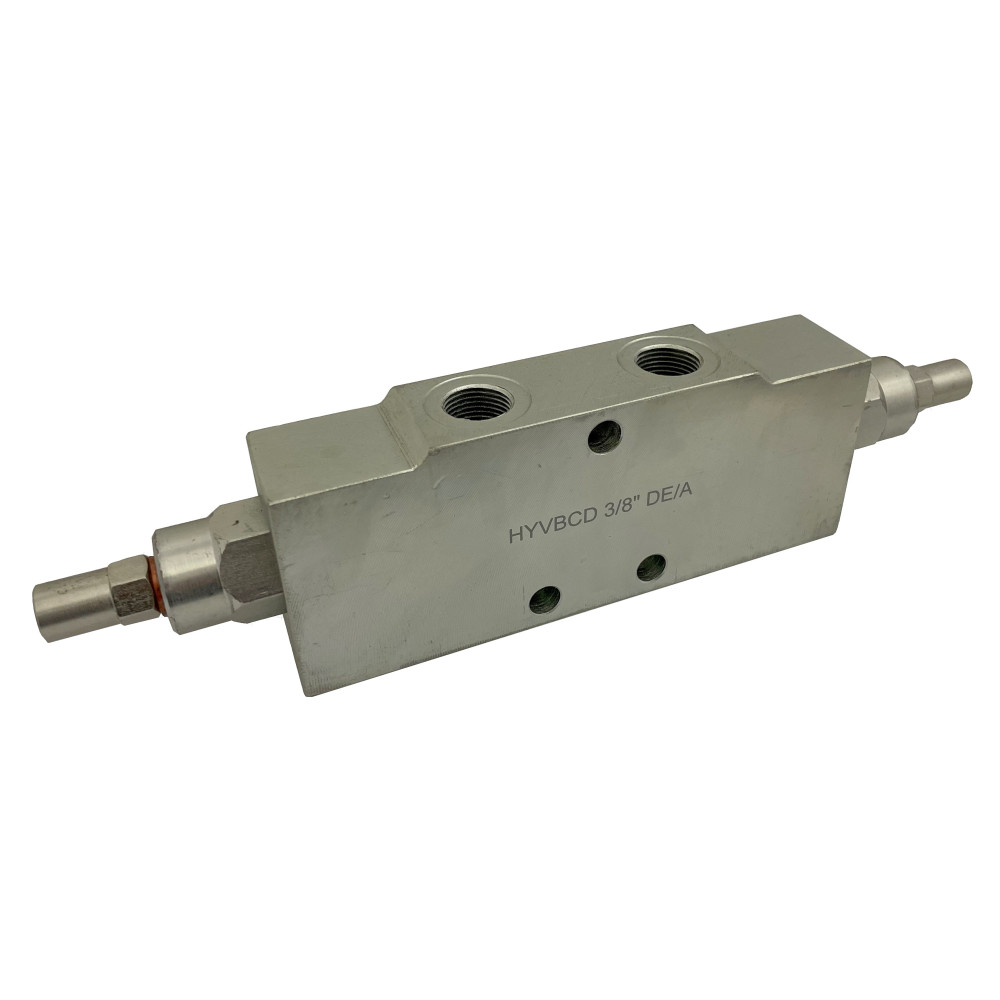 Dvojitý brzdný ventil HYVBCD 3/8 DE/A do potrubí se používá buď jako bezpečnostní prvek k aretaci hydraulického válce před prasknutím hadice, nebo také k uzamčení tlaku.
