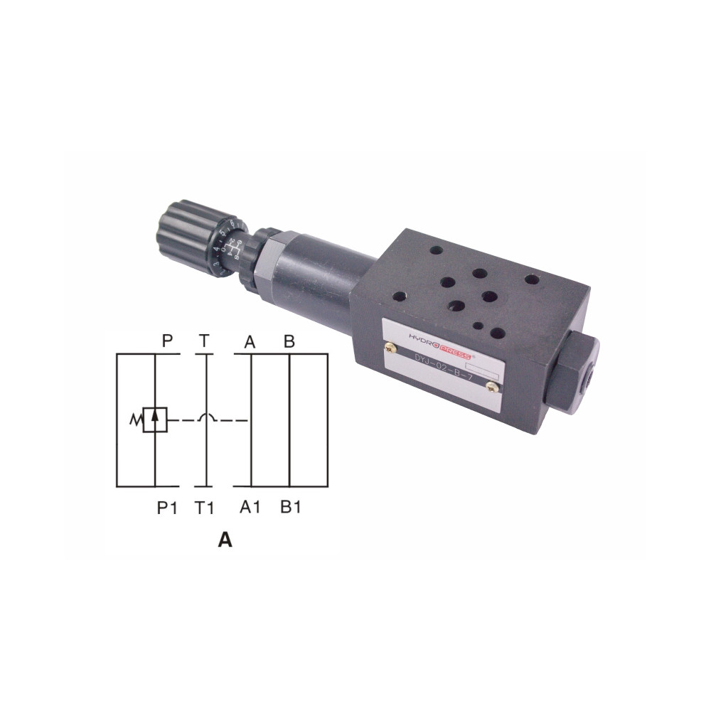 DYJ-02-A-14 - Redukční ventil s ruční regulací, modulový, NG06, 35 l/min, 0-140 bar, A